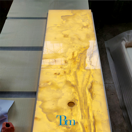 The backlighting process of some of natural stones is a very fascinating component of our job. The materials which allow light to pass through, come to life and acquire an amazing communication power for those who admire them. Nature ignites and becomes powerful.